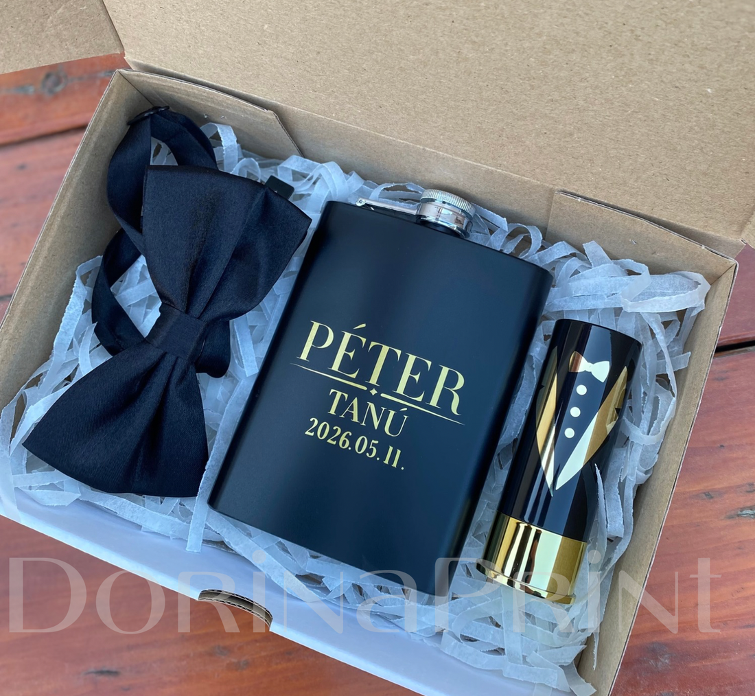 Új Tanú felkérő csomag férfiak részére az esküvőn és a legénybúcsún egyaránt használható kiegészítőkkel.