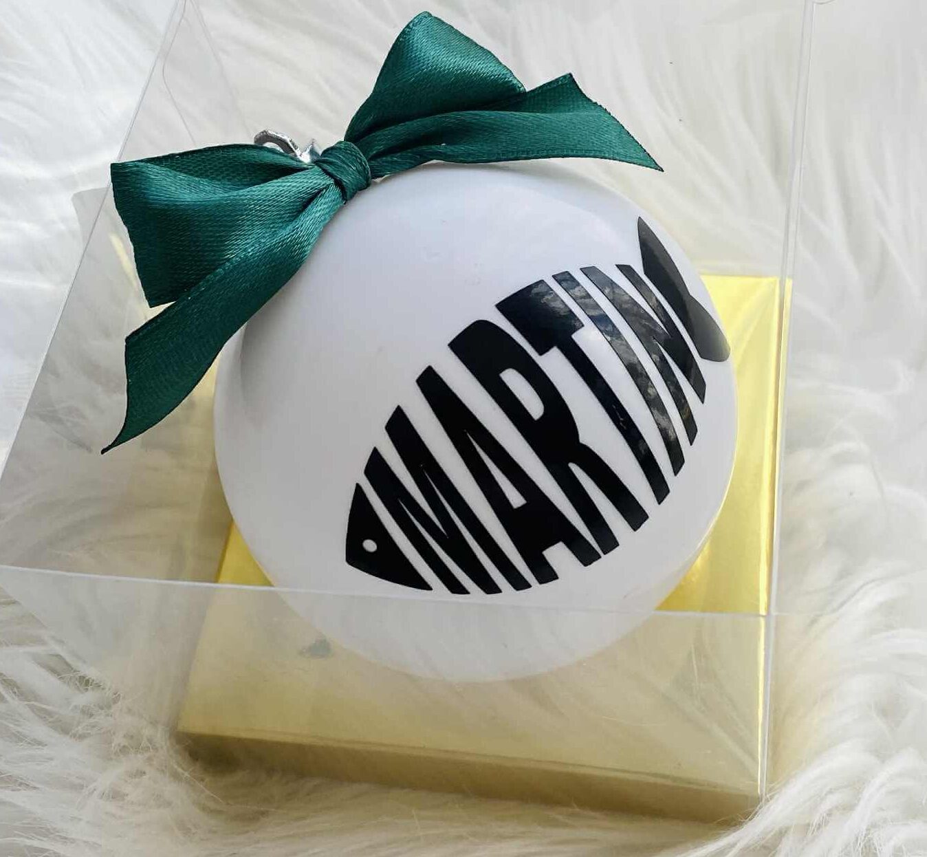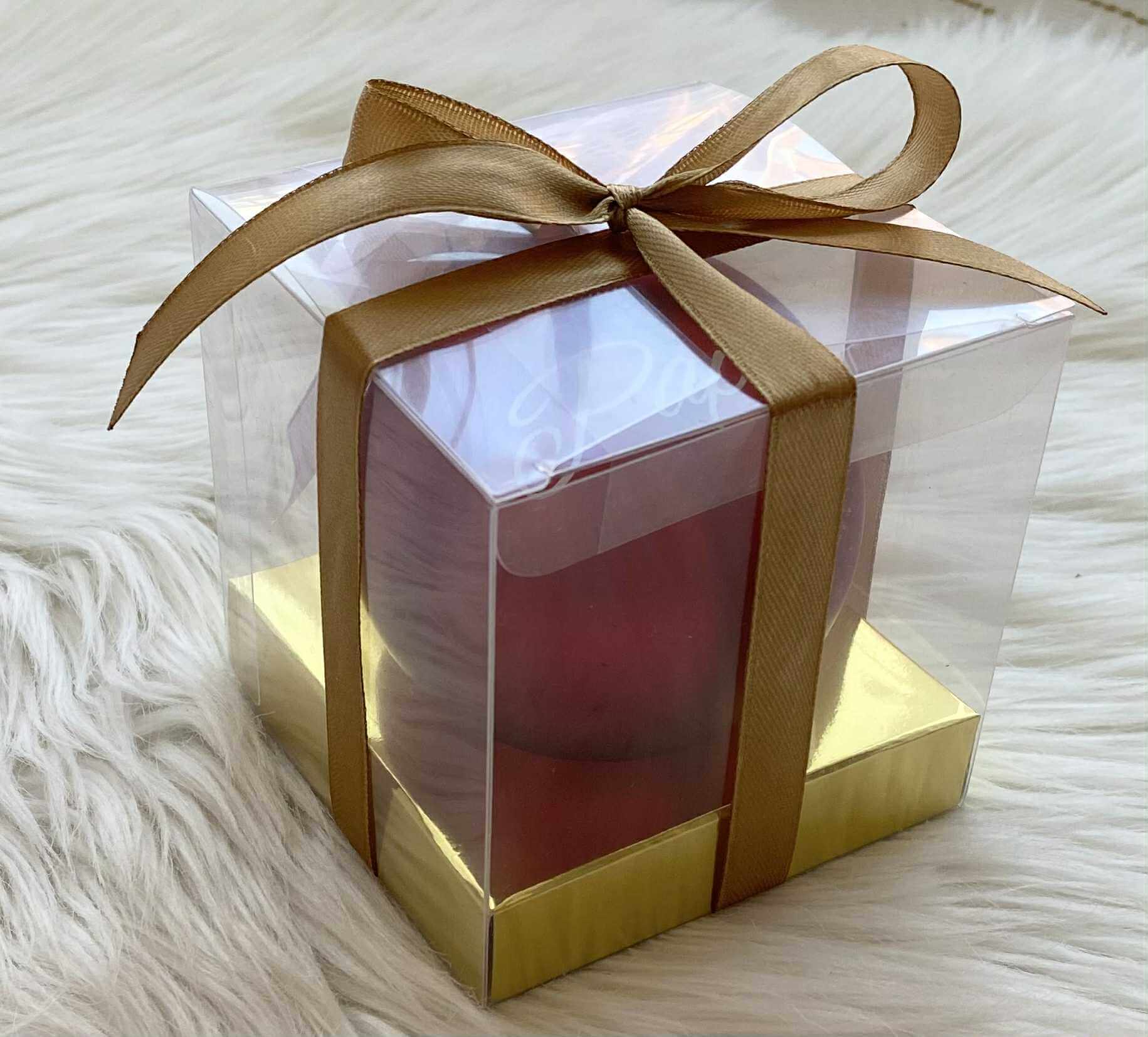Díszoboz, szalaggal átkötve 6 vagy 8-cm átmérőjű gömbökhöz, kisebb ajánékokhoz.