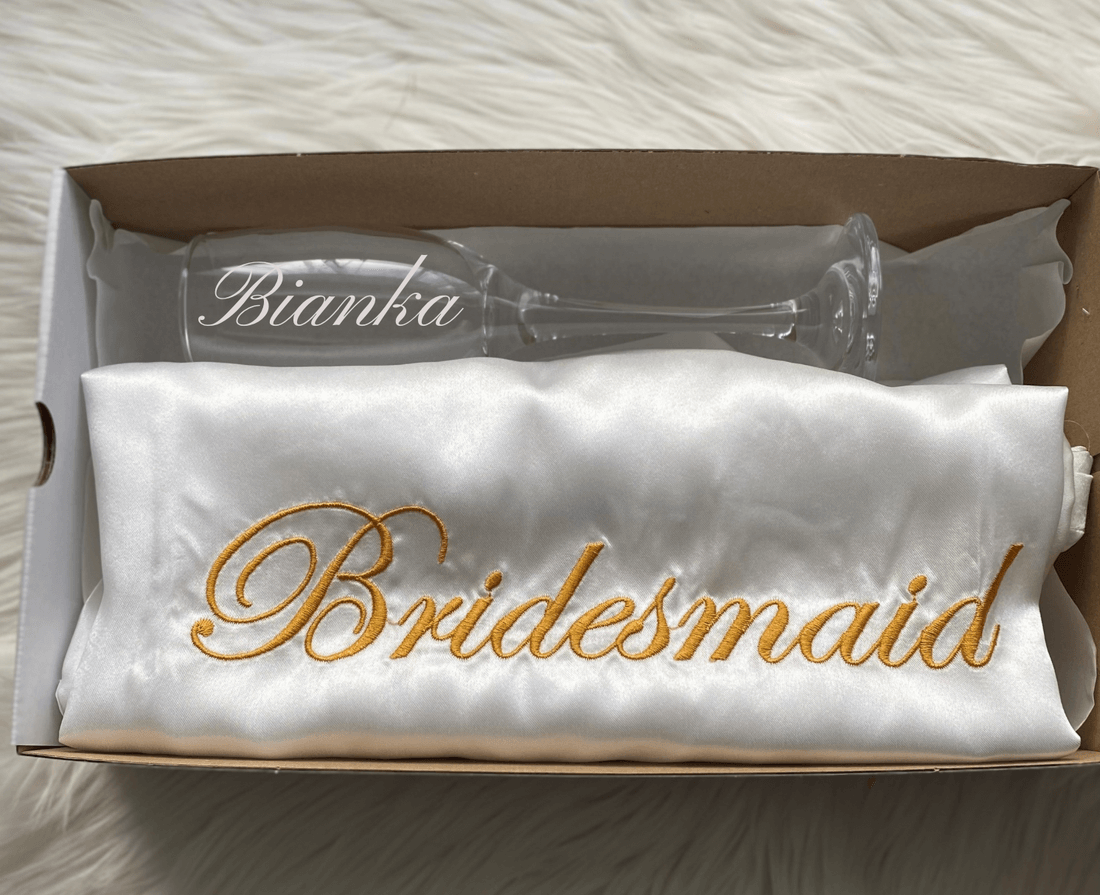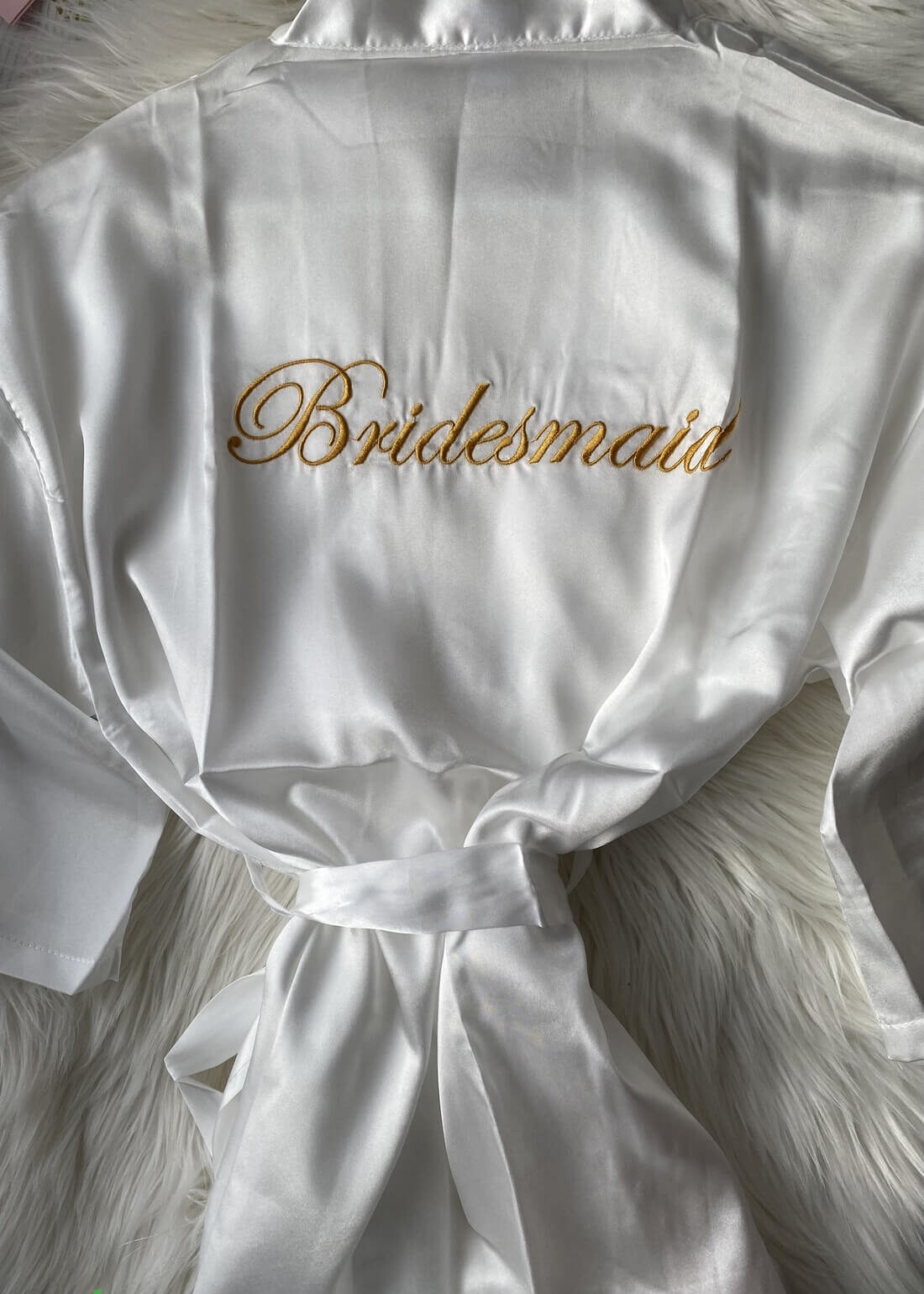 - 1 db készülődős köntös Bridesmaid hímzett, arany színű felirattal