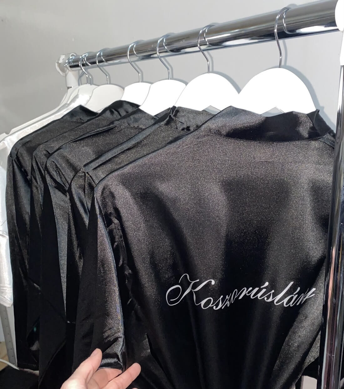 - 1 db egyedi készülődős köntös Tanú és vagy Koszorúslány felirattal -dátum kérhető a kötőjére-