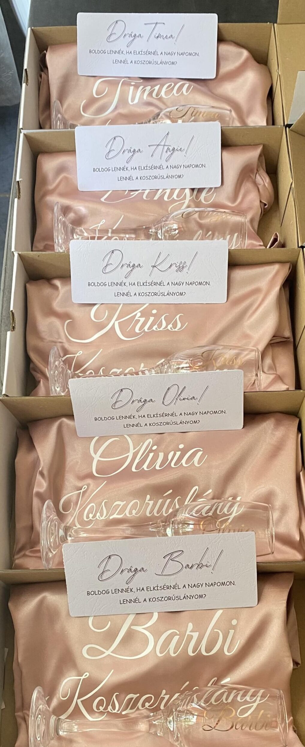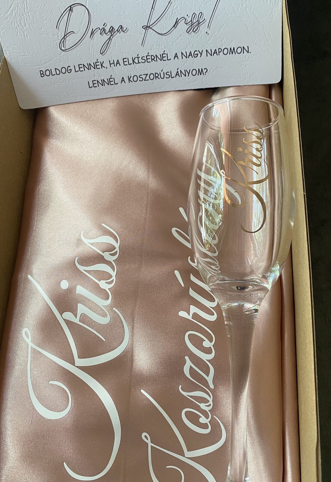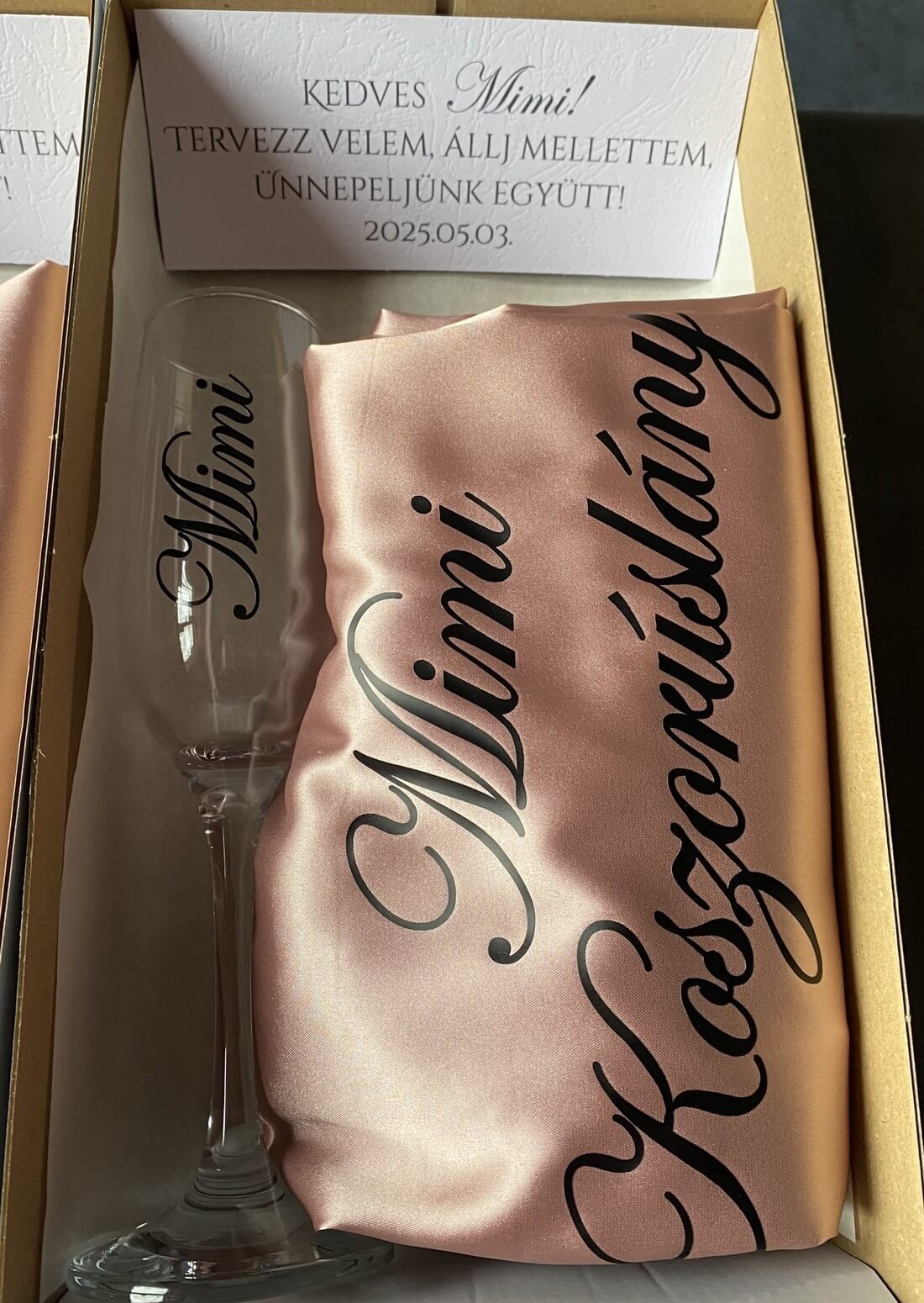 - 1 db pezsgős pohár névvel